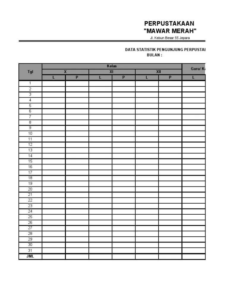 Madrasah aliyah negeri (man) 13 jakarta. Format sarana dan prasarana\perpustakaan\10 buku kunjungan kelas . Aplikasi cetak kartu anggota perpustakaan otomatis format excel 2016 kartu perpustakaan . Perpustakaan juga menyediakan sebuah buku catatan pengunjung di dekat pintu masuk perpustakaa, sebagai catatan kunjungan siswa kem perpustakaan. Syukur lenteng agung jakarta selatan telp.